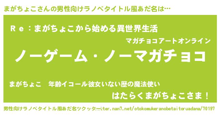 | ヒーロー風カッコイイあだ名 | 『慈愛の使者まがちょこ』『仮面マガダー』 |