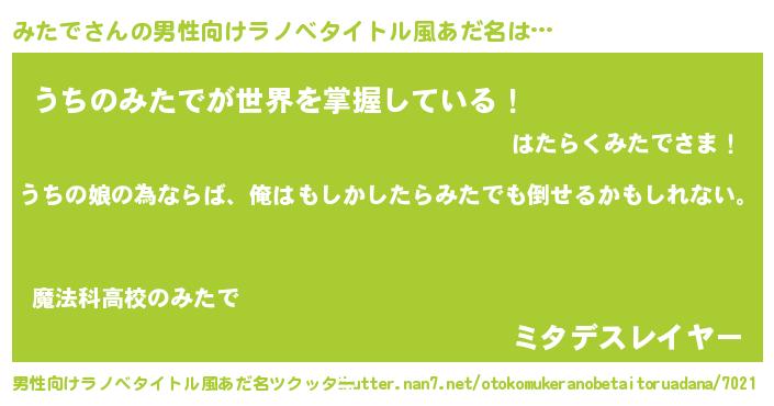 | ヒーロー風カッコイイあだ名 | 『ウルトラみたでマン』『究極戦士ミタデ』 |