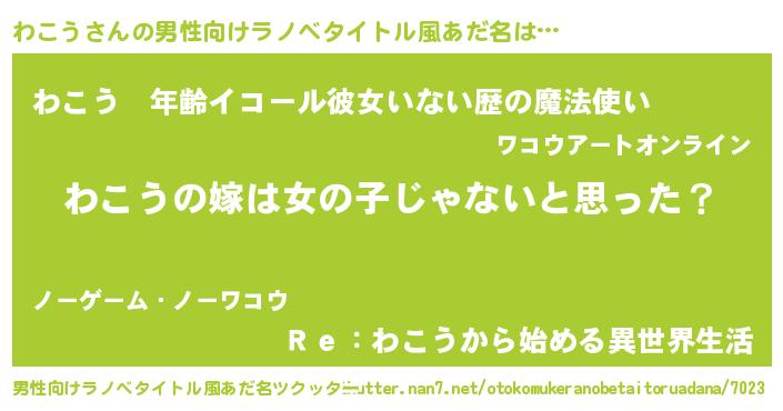 | 女子向けラノベタイトル風あだ名 | 『わこう様がみてる』『闇のわこう』 |