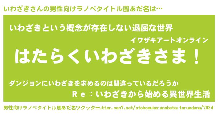 | 胡散臭い通販商品みたいなあだ名 | 『絶対に幸福をもたらす健康食品…その名も「いわざき」』 |