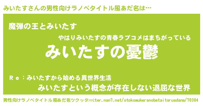 | 女子向けラノベタイトル風あだ名 | 『(仮)みいたすのやんごとなき事情』 |