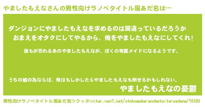 | 女子向けラノベタイトル風あだ名 | 『異世界でカフェやましたもえなを開店しました。』 |