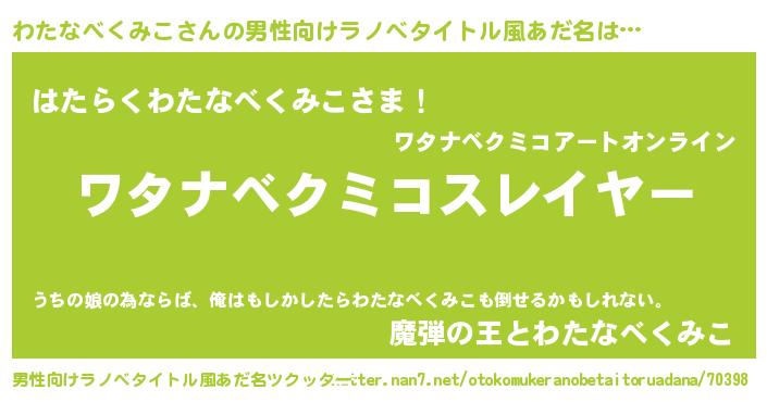 | 胡散臭い通販商品みたいなあだ名 | 『ハリウッド女優が絶賛した世界で10本だけ現存している希少なブランデー…その名も「わたなべくみこ」』 |