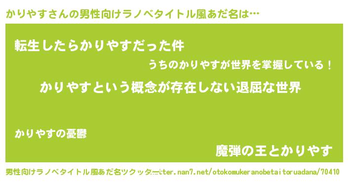 | ヘコむあだ名 | 『かりやす(笑)』『かりにー』 |