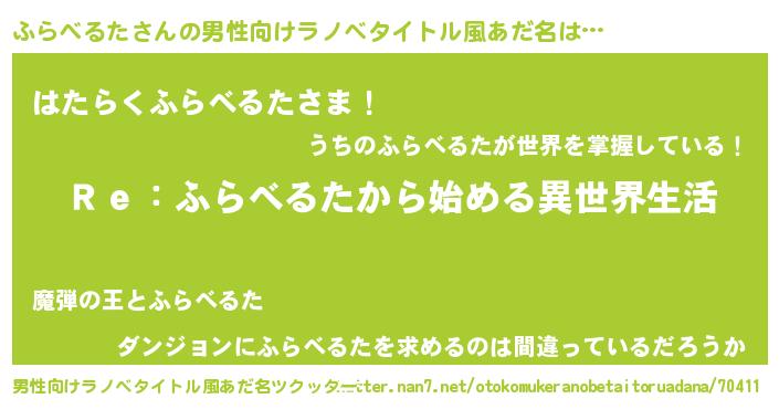 | 女子向けラノベタイトル風あだ名 | 『ふらべるたストレイドッグス』 |