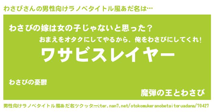 | 女子向けラノベタイトル風あだ名 | 『婚約破棄系悪役わさびに転生したので、保身に走りました。』 |