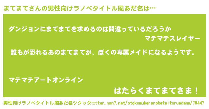 | 胡散臭い通販商品みたいなあだ名 | 『前代未聞の健康食品…その名も「まてまて」』 |