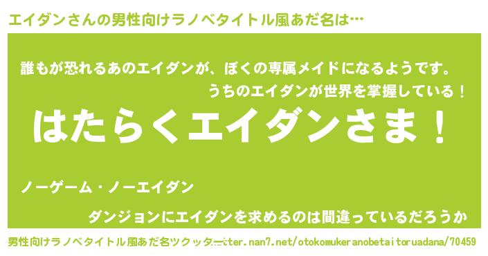 | ヘコむあだ名 | 『エイダン(遠い目)』『エイっ子』 |