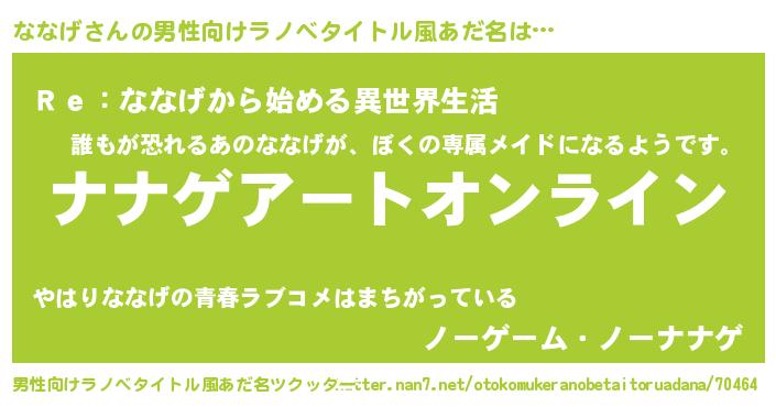 | 意味不明あだ名 | 『ペロリンななげ』『自称ななげ』 |