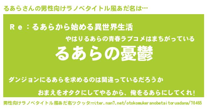 | 胡散臭い通販商品みたいなあだ名 | 『必ず成功する水晶球…その名も「るあら」』 |