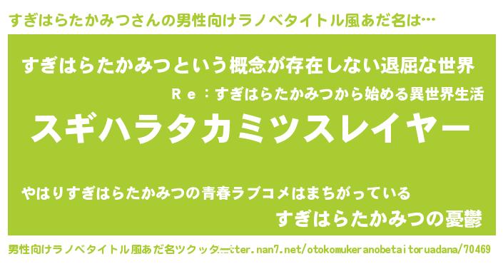 | ヘコむあだ名 | 『すぎはらたかみつ(爆)』『すぎふぇ~』 |