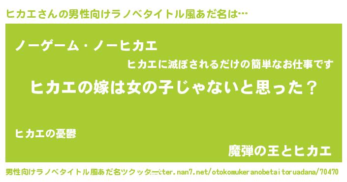 ヒカエさんの男性向けラノベタイトル風あだ名をツクッター!