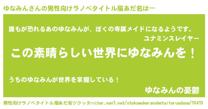 | 意味不明あだ名 | 『住所不定無職ゆなみん(7歳)』 |