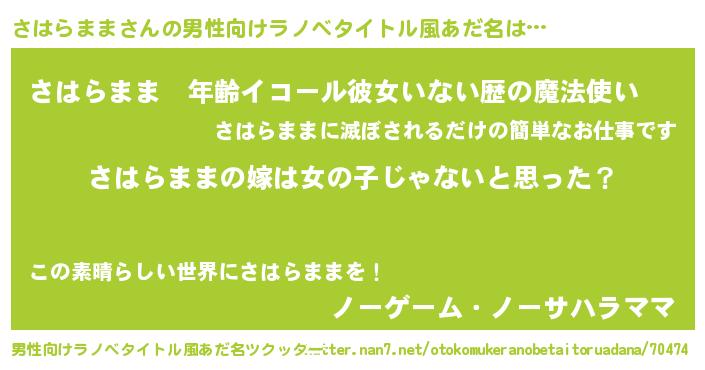 | 胡散臭い通販商品みたいなあだ名 | 『全米が絶賛したネックレス…その名も「さはらまま」』 |