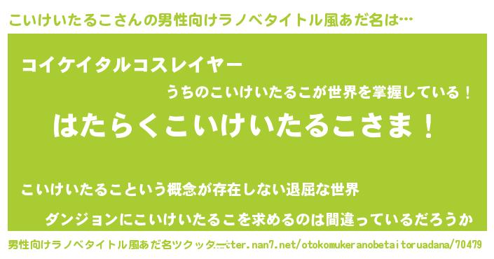 | ヘコむあだ名 | 『こいお』『こいけいたるこ(苦笑)』 |