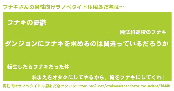 | 女子向けラノベタイトル風あだ名 | 『フナキは平凡を望む』 |