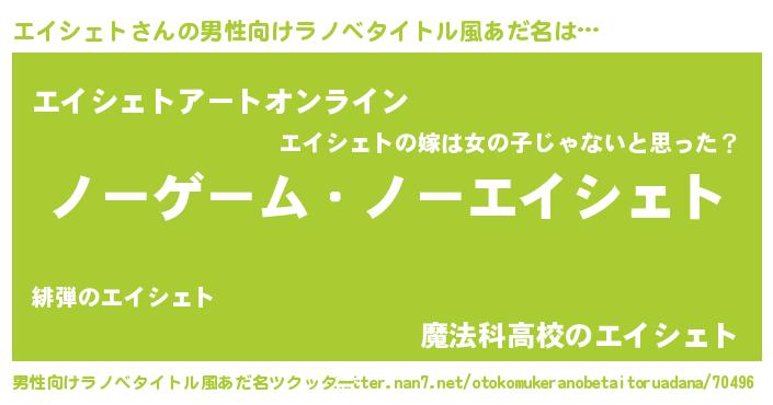 | ヒーロー風カッコイイあだ名 | 『天空の使者エイシェト』『暗黒騎士エイ』 |
