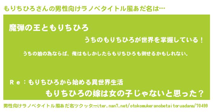 | 女子向けラノベタイトル風あだ名 | 『もりちひろの婚約者』『闇のもりちひろ』 |