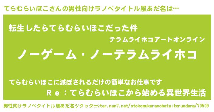 | 伝説のあだ名 | 『救世主となる占い師てらむらいほこ』 |