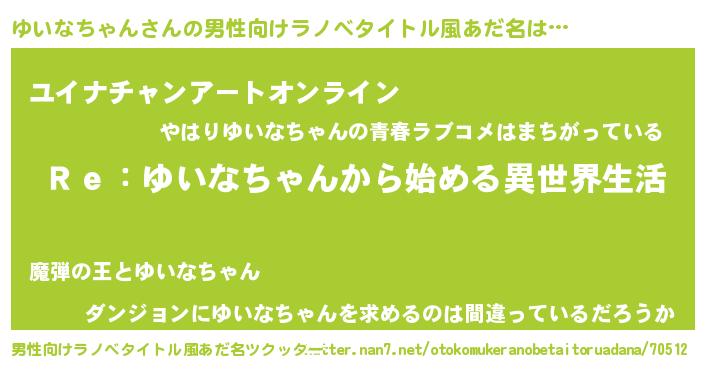 | 女子向けラノベタイトル風あだ名 | 『闇のゆいなちゃん』 |