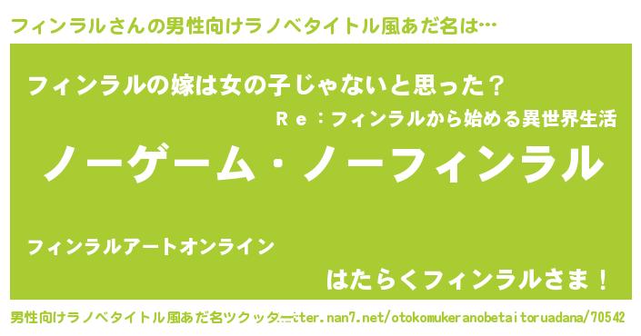 | ヒーロー風カッコイイあだ名 | 『慈愛の使者フィンラル』『天弓騎士フィ』 |