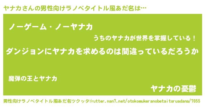 | 胡散臭い通販商品みたいなあだ名 | 『伝統あるサプリメント…その名も「ヤナカ」』 |