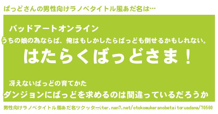 | 胡散臭い通販商品みたいなあだ名 | 『必ず成功するブレスレット…その名も「ばっど」』 |