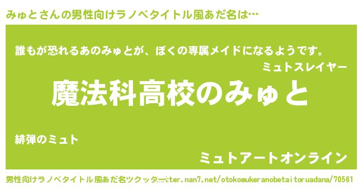 | 女子向けラノベタイトル風あだ名 | 『みゅとなんてお断りですっ。』 |