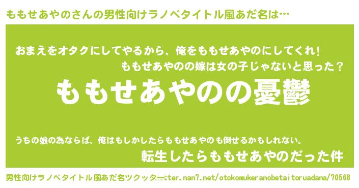 | ヘコむあだ名 | 『ももにゅー』『ももを』『酢こんぶ』 |