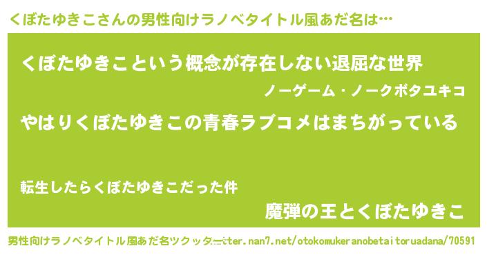| 女子向けラノベタイトル風あだ名 | 『くぼたゆきこ伯爵の花嫁』 |