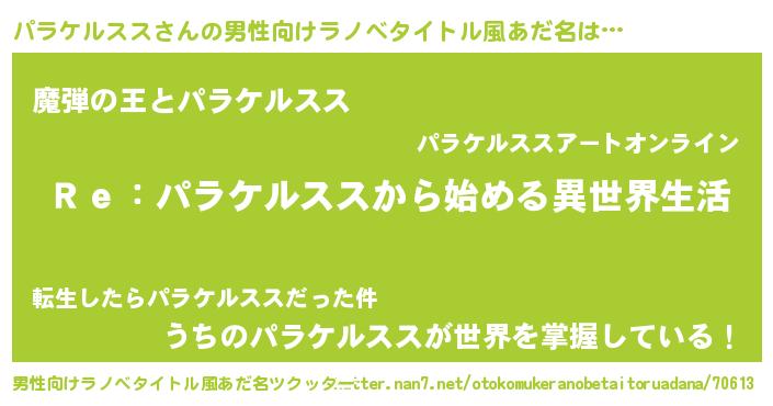 | 女子向けラノベタイトル風あだ名 | 『闇のパラケルスス』 |