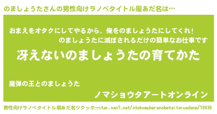 | 胡散臭い通販商品みたいなあだ名 | 『お金では代えられないイリジウム磁石…その名も「のましょうた」』 |