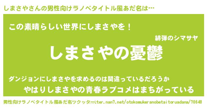 | 胡散臭い通販商品みたいなあだ名 | 『必ず成功する水晶球…その名も「しまさや」』 |