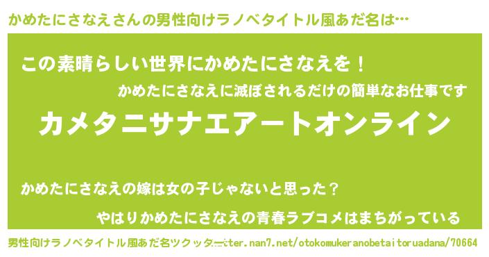 | 女子向けラノベタイトル風あだ名 | 『かめたにさなえ姫と円卓の騎士』 |