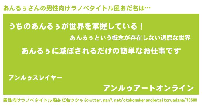 | 胡散臭い通販商品みたいなあだ名 | 『億万長者になれる霊験あらたかなお札…その名も「あんるぅ」』 |