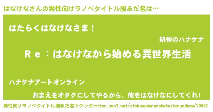 | 女子向けラノベタイトル風あだ名 | 『はなけなストレイドッグス』 |