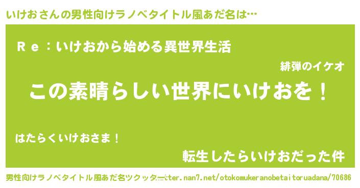 | 意味不明あだ名 | 『住所不定無職いけお(68歳)』『自称いけお』 |