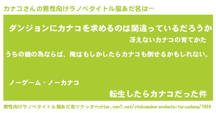 | 女子向けラノベタイトル風あだ名 | 『カナコの婚約者』『カナコ恋絵巻』 |