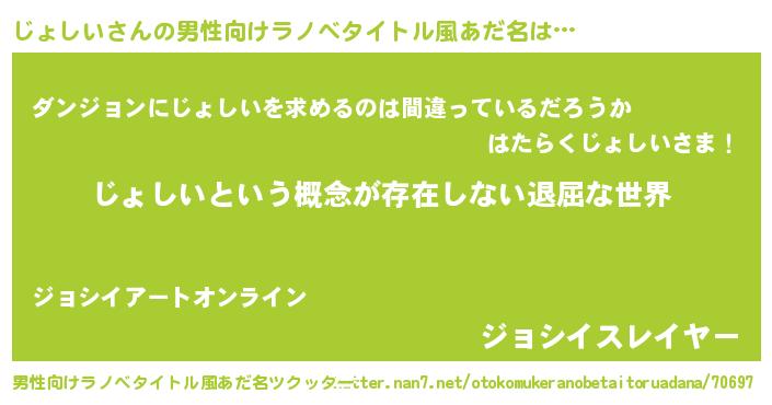 | ヘコむあだ名 | 『じょしい(苦笑)』『じょっぺ』 |