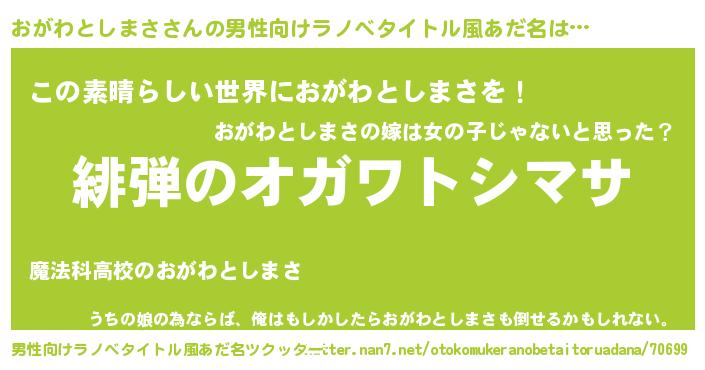 | 意味不明あだ名 | 『住所不定無職おがわとしまさ(1歳)』 |