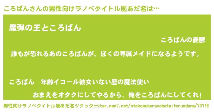 | ヒーロー風カッコイイあだ名 | 『ネオコロバン』『仮面コロダー』 |
