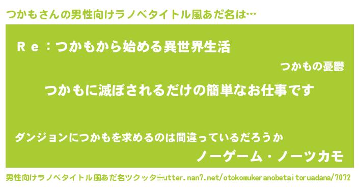| 女子向けラノベタイトル風あだ名 | 『横柄つかもと宰相陛下』『闇のつかも』 |