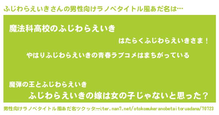 | 女子向けラノベタイトル風あだ名 | 『ふじわらえいきの雑貨屋さん』 |