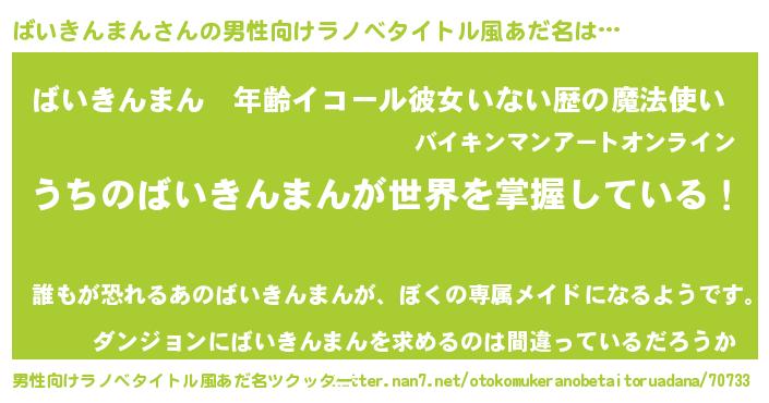| 女子向けラノベタイトル風あだ名 | 『男装ばいきんまんの憂鬱な任務』 |