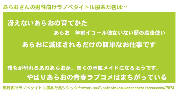 | ヒーロー風カッコイイあだ名 | 『ウルトラあらおマン』『ネオアラオ』 |