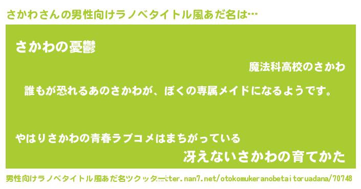 | 胡散臭い通販商品みたいなあだ名 | 『来世でも幸せになれる水素水…その名も「さかわ」』 |