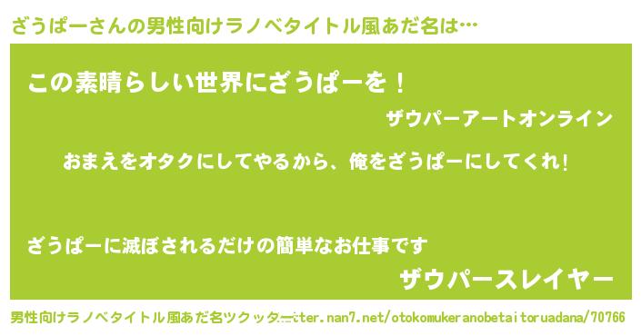 | ヒーロー風カッコイイあだ名 | 『正義の使者ざうぱー』『仮面ザウダー』 |
