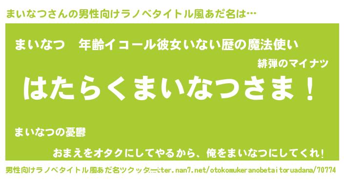 | ヘコむあだ名 | 『まいっふぃ~』『まいなつ(笑)』 |