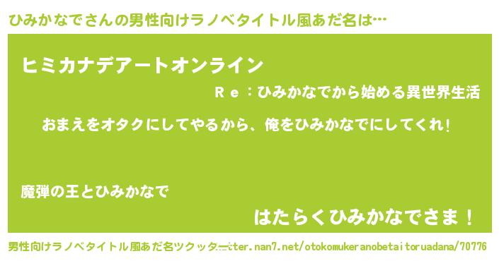 ひみかなでさんの男性向けラノベタイトル風あだ名をツクッター!