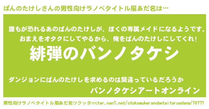 | 意味不明あだ名 | 『永久保存ばんのたけし』 |